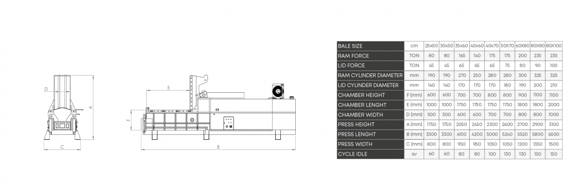 It provides the packaging of ferrous and non-ferrous materials in various sizes. Its high-hardness plate made of Hardox steel is resistant to friction for many years. It turns metals such as black sheet, aluminum, tin, copper into bales by pressing in the required bale dimensions.