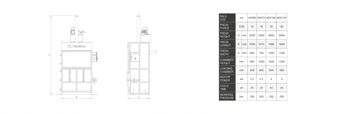 Teknik Ömer vertical bale compression presses are designed for the recycling industry to provide ease of processing, service and transfer and to protect our resources.